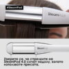 - Уредът използва патентована технология с пара с постоянен поток на суха пара (0,8г/мин) за видимо по-гладка коса3.