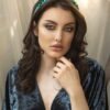 Сатенена тиара, с два размера зелен кристал-емералд. Тиарата е много удобна за комбинация с ежедневни и с елегантни аутфити. Тиарата е много бляскава и е почти невъзможно да остане незабелязана.