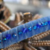 Кадифена тиара за коса – тънък и деликатен модел в красив и открояващ се син цвят. Ако искате да носите морето винаги в косите си, това е Вашият модел тиара.
