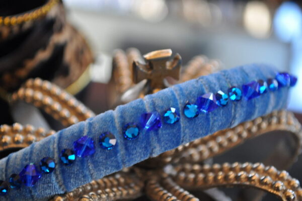 Кадифена тиара за коса – тънък и деликатен модел в красив и открояващ се син цвят. Ако искате да носите морето винаги в косите си, това е Вашият модел тиара.