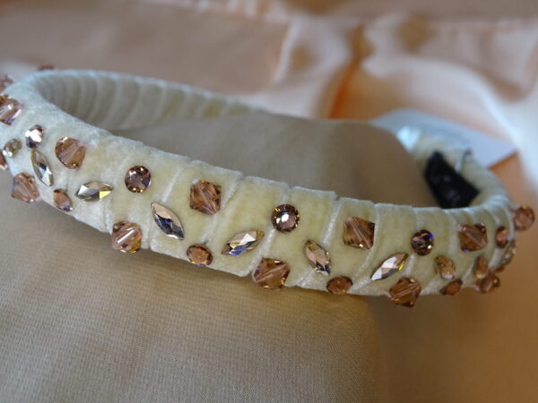 Нашият тотален “бестселър” и любимо бижу на много дами – тиарата грабва не само с неутралния си цвят, но и с разнообразието от кристали, техните форми и цветове. Тиарата е тънка и е много деликатна, въпреки че е осеяна с кристали. Подходяща за комбинация с дрехи от всякакъв цвят и материя.