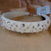 Kадифено бижу в снежно бяло с три вида кристали. Кристалите под форма на пирамиди са най-забележителни, защото създават невероятна визия на тиарата, когато е на главата. Подходяща за булки като всичко по дизайна и материята може да бъде видоизменяно.