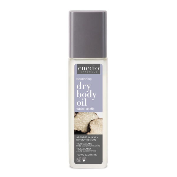 Подхранващо сухо олио Cuccio с Бял трюфел подхранващ ефект върху кожата, примесен с лукса на белия трюфел.
