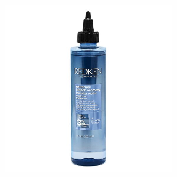 Redken Extreme Bleach Recovery Lamellar Water представлява ламеларна грижа с изплакване за изсветлена и крехка коса. Формулата, обогатена с екстракт от центела азиатика и специалния за Redken нежен подхранващ комплекс, се загрява при допир с косата. Резултатът е повече мекота, гладкост и блясък за твоята коса. Благодарение на своята технология, този продукт действа срещу порьозността на косата.