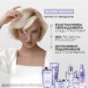 Интензивна грижа за изсветлена руса коса, обогатена с хиалуронова киселина и екстракт от Еделвайс. Задължителна грижа за всеки тип руса коса с текстура на матов лавандулов млечен гел. Продукт-хибрид, който обединява подхранващата сила на маска и леката формула на мляко. Осигурява на косата интензивно подхранване без утежняване, моментално и интензивно възстановяване. Предпазва косъма от накъсване, дълготрайно омекотява и защитава косата.