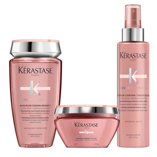 Комбинацията от продукти Chroma Absolu на Kérastase е специално разработена, за да подхранва и защитава боядисаната плътна коса. Тази ежедневна грижа за косата ще ви помогне да поддържате жизнеността на цвета на косата си, като същевременно я запазите гладка, здрава на вид и лесна за оформяне.