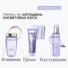 - Стъпка 2 Грижа: Подхранващ балсам за изсветлена коса. Интензивна грижа за изсветлена руса коса, обогатена с хиалуронова киселина и екстракт от Еделвайс. Задължителна грижа за всеки тип руса коса с текстура на матов лавандулов млечен гел. Продукт-хибрид, който обединява подхранващата сила на маска и леката формула на мляко.