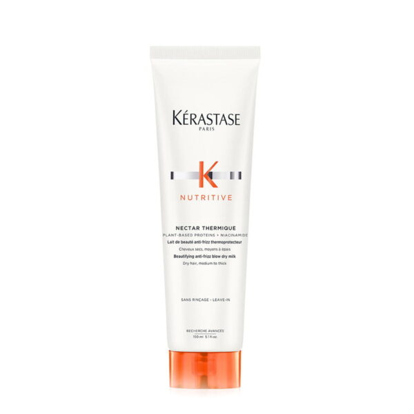 Kerastase Nutritive Nectar Thermique е термозащитен крем за нормална до плътна суха коса, подходящ за употреба при обработка на косата с топлинни инструменти – сешоар, преса или маша. Предпазва косата от топлина до 230°* и я защитава от фриз ефект, осигурява подхранване, разплита косата, като я прави гладка и блестяща.