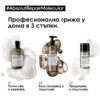 Absolut Repair Molecular на е L’Oréal Professionnel е серум с изплакване за увредена коса, който действа като маска, обогатен с 2% система за защита на пептидните връзки и 5 аминокиселини. Осигурява възстановяване на молекулярната структура на косата чрез възстановяване на слабите връзки в косъма*, а това означава повече от повърхностно възстановяване – укрепва вътрешността на косъма на молекулярно ниво. Вдъхновен от мощните серуми за грижа за кожата, той действа интензивно на косъма, за да възстанови здравината на молекулярно ниво**. Възвръща еластичността и свободното движение**. Косата е видимо преобразена, блестяща и гладка.