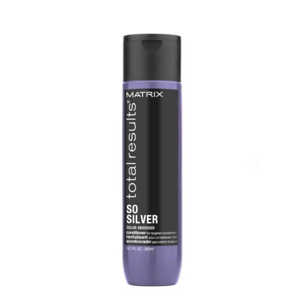 Matrix Total Results So Silver Conditioner е балсам за руса и сива коса, който се насочва към зоните на изсушаване и подхранва косъма в тези участъци. Хидратира сухата коса, като я оставя копринено гладка. Платиненорусите и сребристи нюанси са по-жизнени.