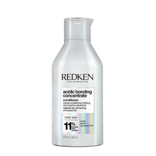 Redken Acidic Bonding Concentrate Conditioner е балсам с концентрирана формула за всеки тип увредена коса. Съдържа концентриран комплекс за защита връзките на косъма, който заздравява отслабените връзки във вътрешността му и прави косата по-силна. Този балсам от Redken, с балансирано pH, е формулиран специално с киселинно pH, за да защити косата от негативните влияния при боядисване, стилизиране и дори от водата.