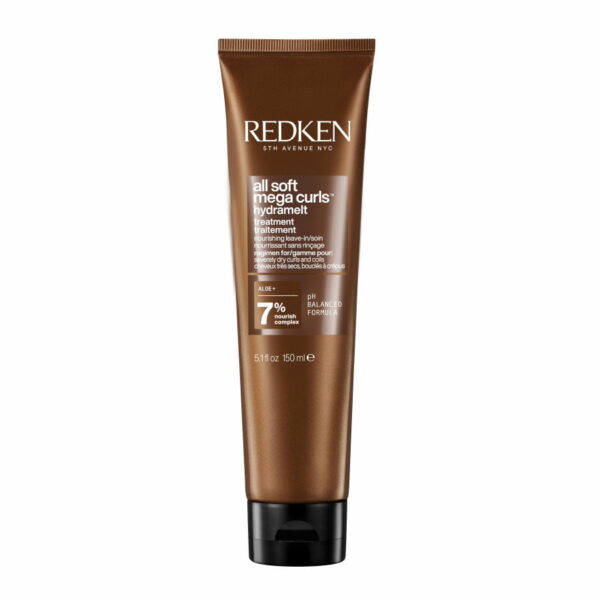 Redken All Soft Mega Curls Hydramelt Leave-In Treatment е грижа без изплакване, подходяща за нормална до плътна къдрава коса, подходяща за ежедневна употреба. Интензивно подхранва и видимо хидратира, дефинира и реактивира силно изсушените къдрици. Подхранващи комплекси, алое, екстракт от цвят на кактус и масло от инка инчи помагат за запазването на влагата в косата за видимо по-здрави къдрици. Улеснява стилизирането с топлина, реактивира къдриците и осигурява до 72 часа* хидратация.