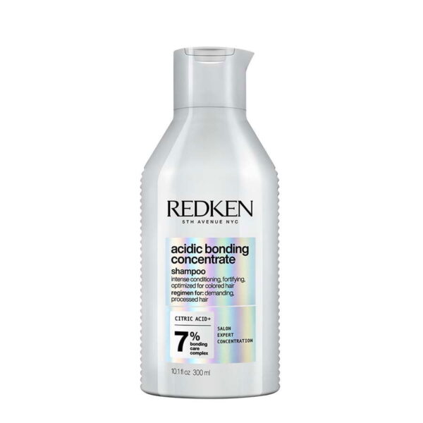 Redken Acidic Bonding Concentrate Shampoo е шампоан с концентрирана формула за всеки тип увредена коса. Съдържа концентриран комплекс за защита връзките на косъма, който заздравява отслабените връзки във вътрешността му и прави косата по-силна. Този изключително плътен и луксозен шампоан от Redken осигурява оптимално възстановяване, интензивно подхранване и защита от избледняване на цвета на косата.