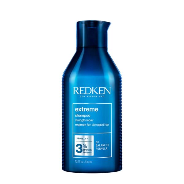 Шампоан Redken Extreme Shampoo за суха безжизнена и увредена коса, която изисква интензивна грижа. С формула, обогатена със соев протеин, придаващ плътност в корените, аргинин, който поддържа здравината на косъма в основата му, и Sepicap, възстановяващ облика на краищата.
